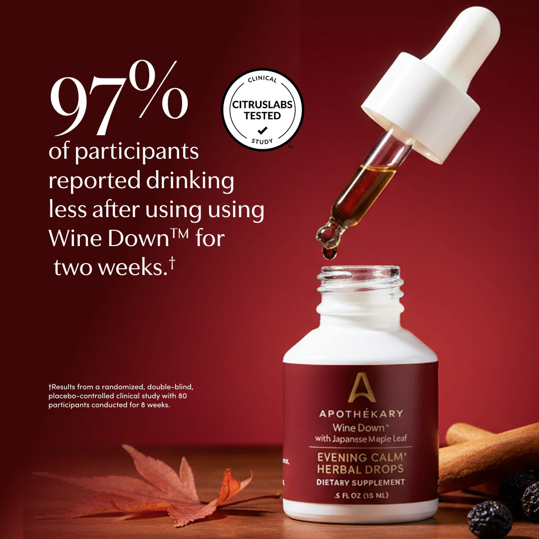 Now & Zen is a limited-edition set of three mini wine inspired herbal drops formulated with Japanese botanicals - Rosé-Tinted Glasses® with Cherry Blossoms, Take The Edge Off® with Yuzu, and Wine Down™ with Japanese Maple Leaf to help support occasional stress relief, emotional balance, and restful sleep.